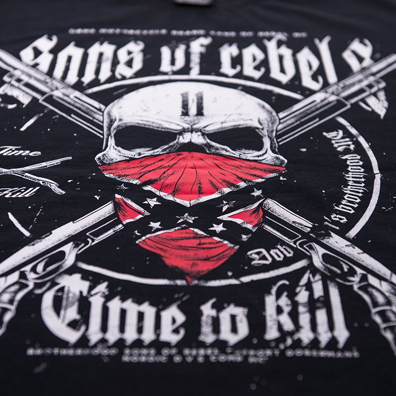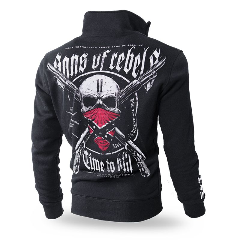 Klasická pánská mikina na zip s kapsami. Na zádech je gotický nápis Time to Kill a lebka s konfederační vlajkou. Kolekce Rebel.