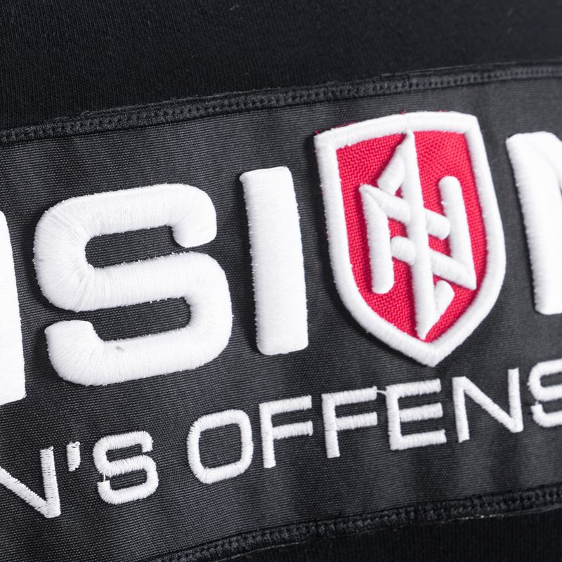Klasická mikina oblékaná přes hlavu. Dolní část mikiny a rukávů je zakončená širokým stahovacím lemem. Oblečení je vyrobeno z vysoce kvalitní bavlny, pochází z řady DIVISION. Na přední straně hrudi se nachází malá nášivka ve tvaru štítu s 3D výšivkou.
