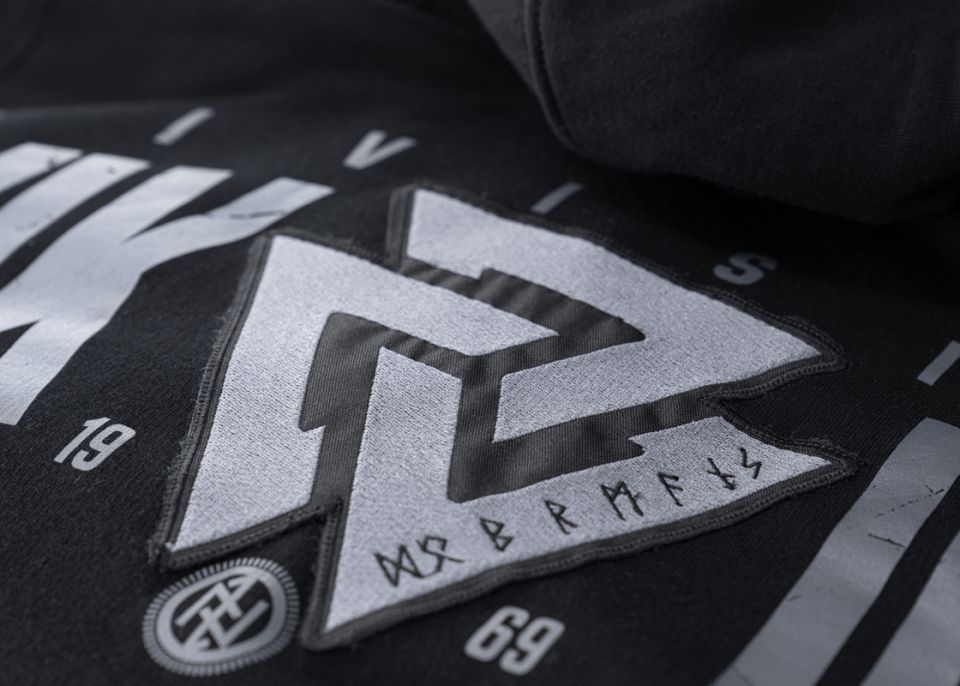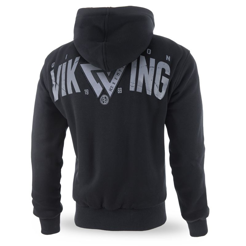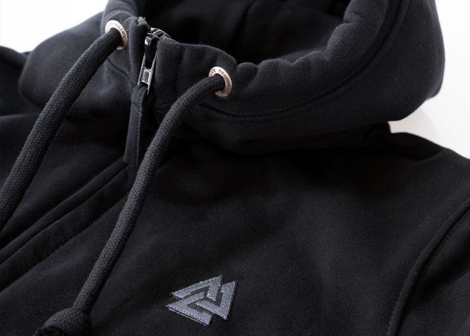 Mikina s kapucí se zapínáním na zip zateplená vrstvou kožichu uvnitř. Vyrobená z vysoce kvalitní bavlny, zakončená stahovacími lemy, se dvěma kapsami na přední straně. Kapuce je ozdobená širokou šňůrkou a kovovými zakončeními s logem značky. Mikina ze série Valknut inspirované severskou symbolikou. Zadní část mikiny je zdobená kombinací vyšívaného symbolu Valknut a potisku Viking Division. Na levé straně hrudi je miniatura skandinávského symbolu.
