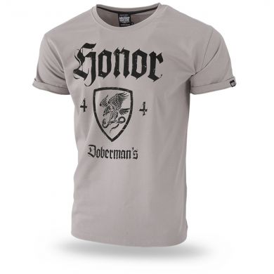 Pánské tričko ze 100% bavlny klasického střihu s krátkým rukávem. Na levém rukávu je umístěna malá cedulka s logem značky. Vpředu 3D potisk Honor Doberman´s.