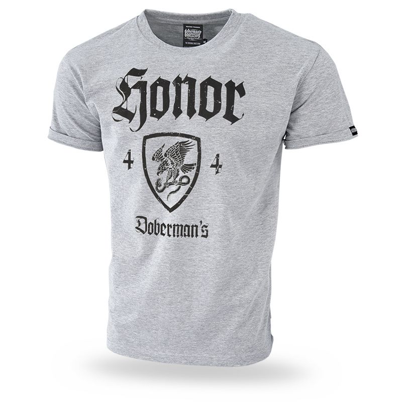 Pánské tričko ze 100% bavlny klasického střihu s krátkým rukávem. Na levém rukávu je umístěna malá cedulka s logem značky. Vpředu 3D potisk Honor Doberman´s.