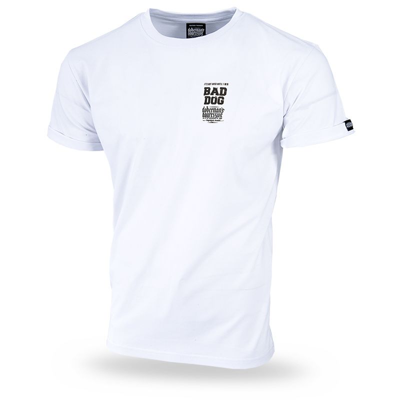 Pánské tričko ze 100% bavlny klasického střihu s krátkým rukávem. Na levém rukávu je umístěna malá cedulka s logem značky. Jak je už pro značku Doberman´s Aggressive typické,na zádech se nachází velký potisk "Mad Dog".