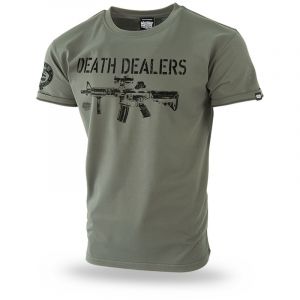 Pánské tričko ze 100% bavlny klasického střihu s krátkým rukávem. Na levém rukávu je umístěna malá cedulka s logem značky. Na přední straně potisk „Death Dealers”.