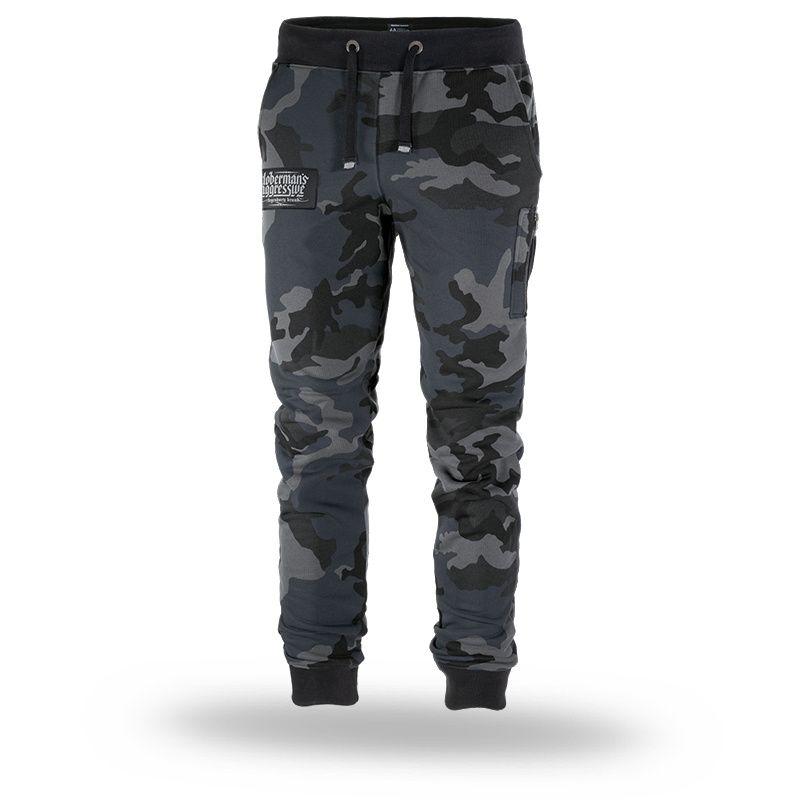 Bavlněné tepláky s lehce se zužujícími nohavicemi zakončené stahovacím lemem. Tepláky jsou vyrobené z příjemné kvalitní bavlny, která zaručuje pohodlí při nošení. Samozřejmostí je možnost regulace v pase pomocí šňůrek,které jsou ozdobené všitými cedulkami s logem Doberman’s Aggressive.