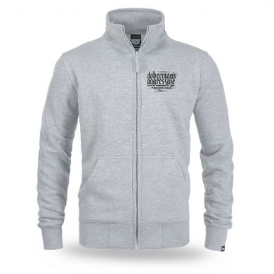 Mikina na zip se stahovacími lemy se dvěma kapsami na přední straně ze 100% bavlny. Na přední i zadní straně mikiny se nachází logo značky vytvořené metodou vypouklého potisku. Zadní část je pokryta velkým logem Doberman’s a na přední straně je logo v menší velikosti.