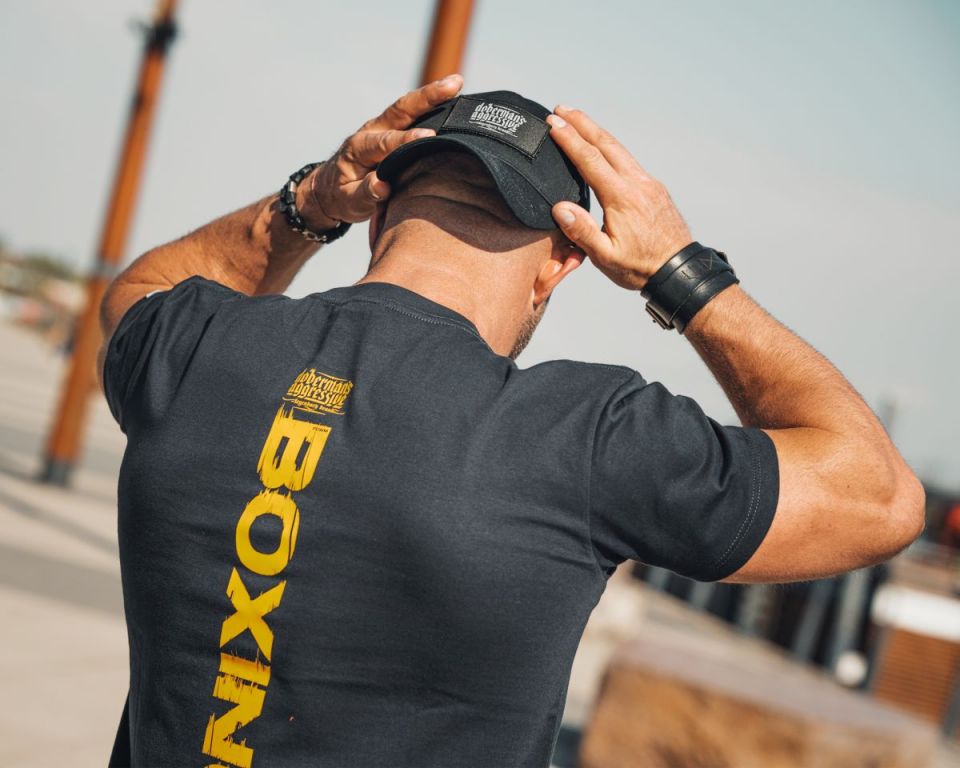 Pánské tričko ze 100% bavlny klasického střihu s krátkým rukávem. Na levém rukávu je umístěna malá cedulka s logem značky. Vpředu a vzadu potisk Boxing – Speed is important,speed kills.