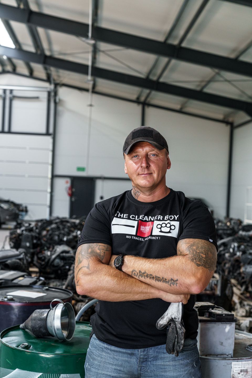 Pánské tričko klasického střihu s dlouhým rukávem ze 100% bavlny. Na hrudníku velký potisk Cleaner boy – No traces,no mercy!
