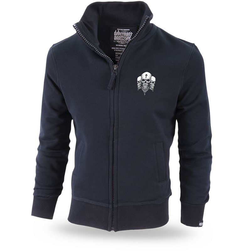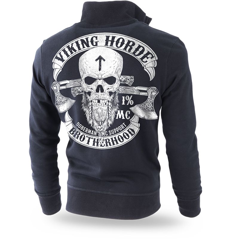 Klasický model mikiny na zip. Má široký stahovací lem v dolní části mikiny a u konce rukávů. Dvě kapsy na přední straně. Uvnitř je velká cedulka s logem Dobermans Aggressive. Tři nevelké lebky jsou vytištěny na přední straně mikiny. Zadní část je pokrytá vzorem s lebkou Vikinga, za ní se nachází dvě zdobené sekery. Celek je uzavřený dvěma prapory s nápisy Viking Horde a Brotherhood. Vzory navazují na severskou mytologii. Kolekce Vikings.