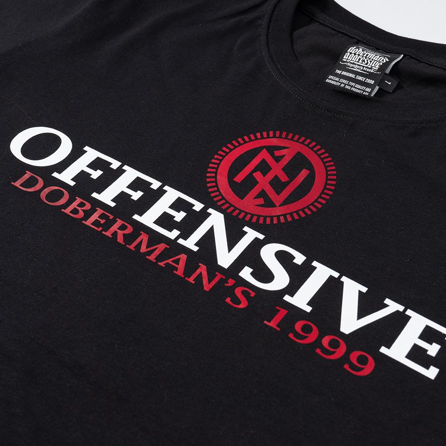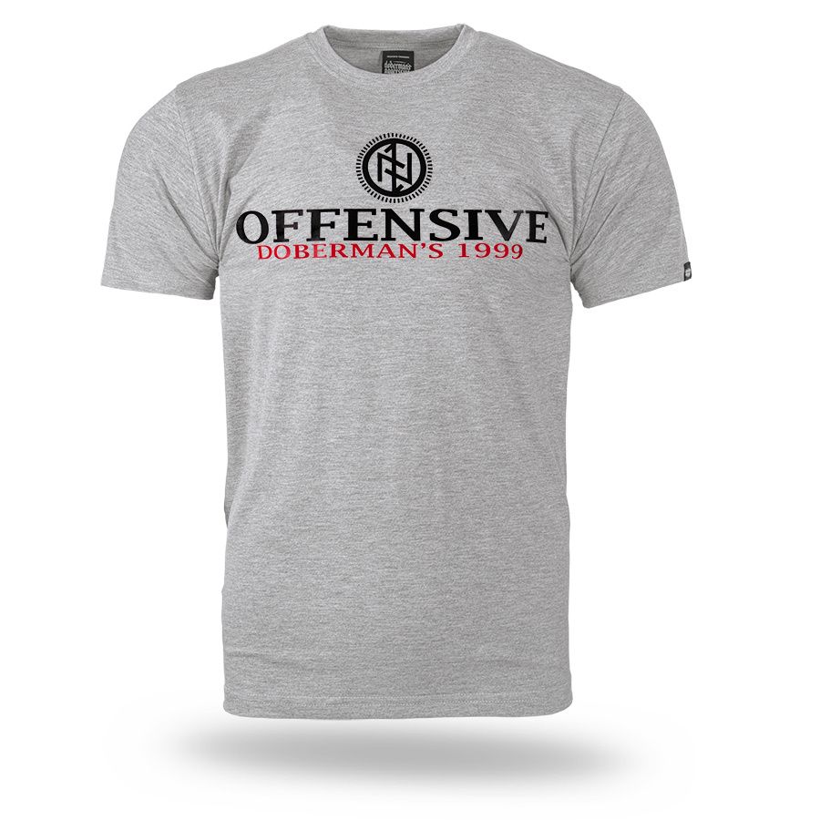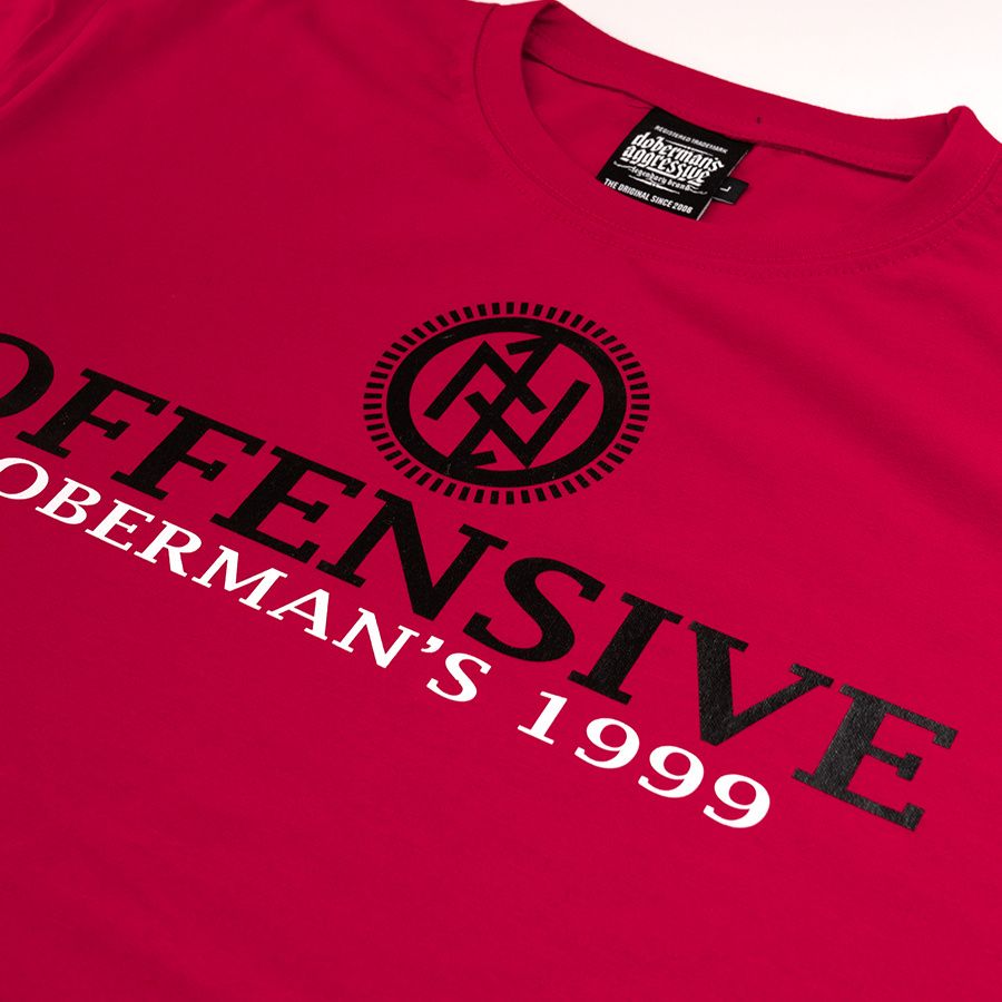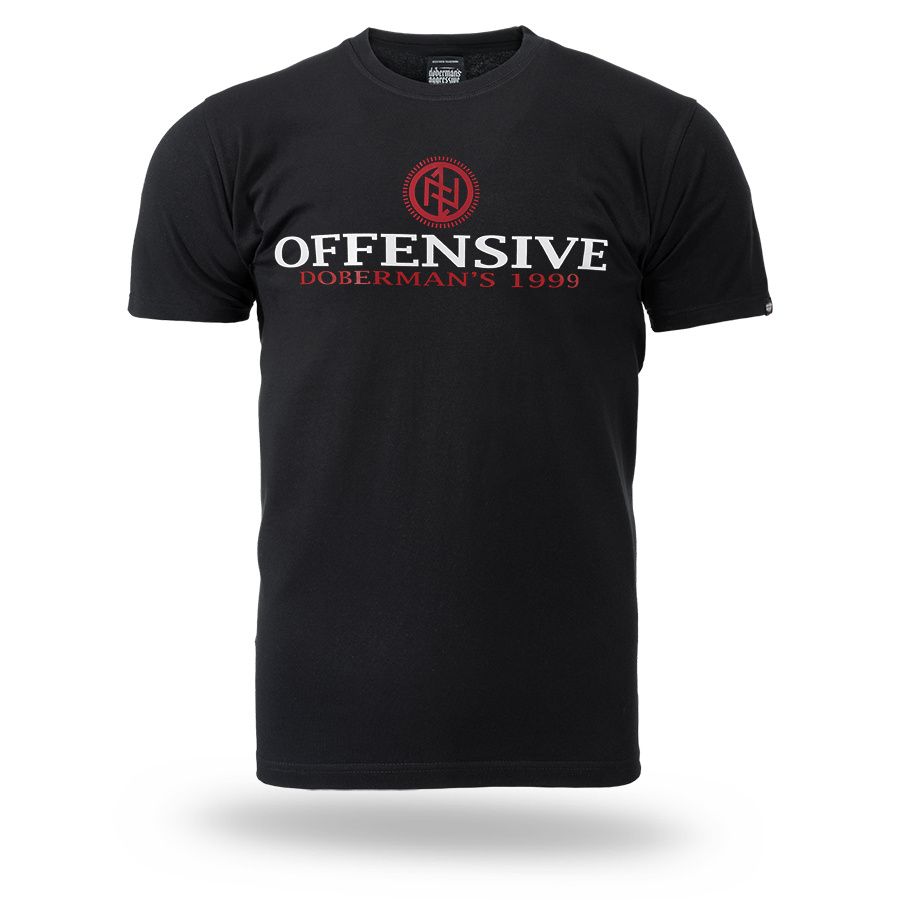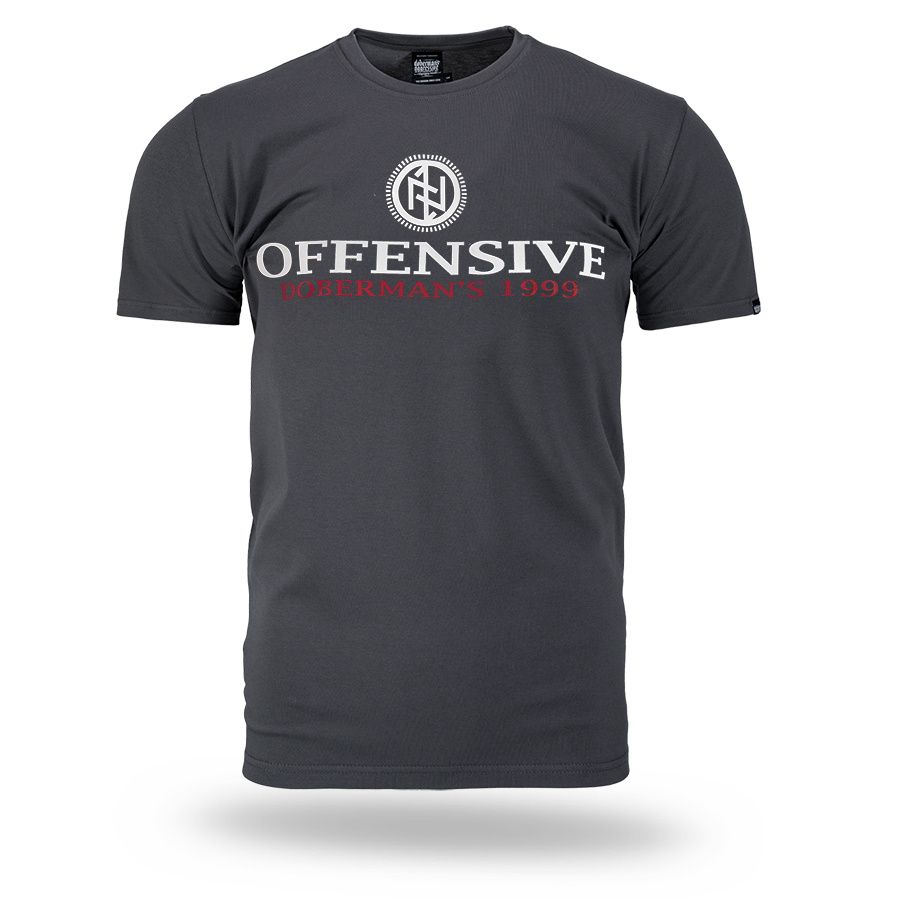 Pánské tričko ze 100% bavlny klasického střihu s krátkým rukávem. Na levém rukávu je umístěna malá cedulka s logem značky. Na hrudníku velký potisk Offensive Doberman´s 1999.