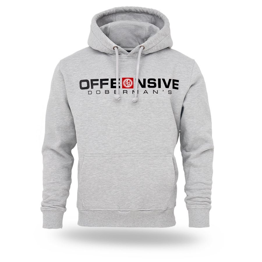 Mikina s kapucí od Dobermans Aggressive je vyrobena z příjemné, pohodlné bavlny,zakončena širokými, elastickými stahovacími lemy jak v pase, tak i na rukávech. Na hrudníku velký potisk Offensive Doberman´s.