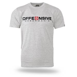 Pánské tričko ze 100% bavlny klasického střihu s krátkým rukávem. Na levém rukávu je umístěna malá cedulka s logem značky. Na hrudníku velký potisk Offensive Doberman´s.