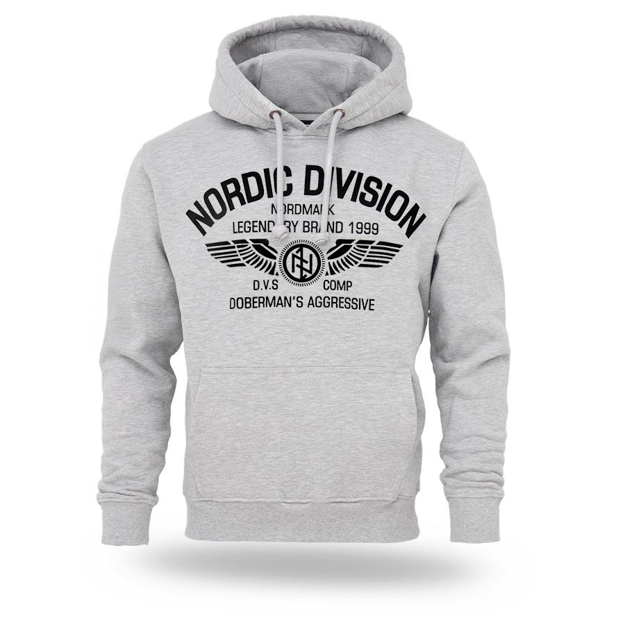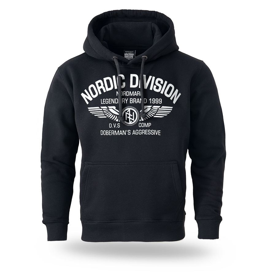 Mikina s kapucí od Dobermans Aggressive je vyrobena z příjemné, pohodlné bavlny,zakončena širokými, elastickými stahovacími lemy jak v pase, tak i na rukávech. Na hrudníku velký potisk Nordic Division.