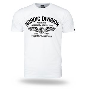 Pánské tričko ze 100% bavlny klasického střihu s krátkým rukávem. Na levém rukávu je umístěna malá cedulka s logem značky. Na hrudníku velký potisk Nordic Division.