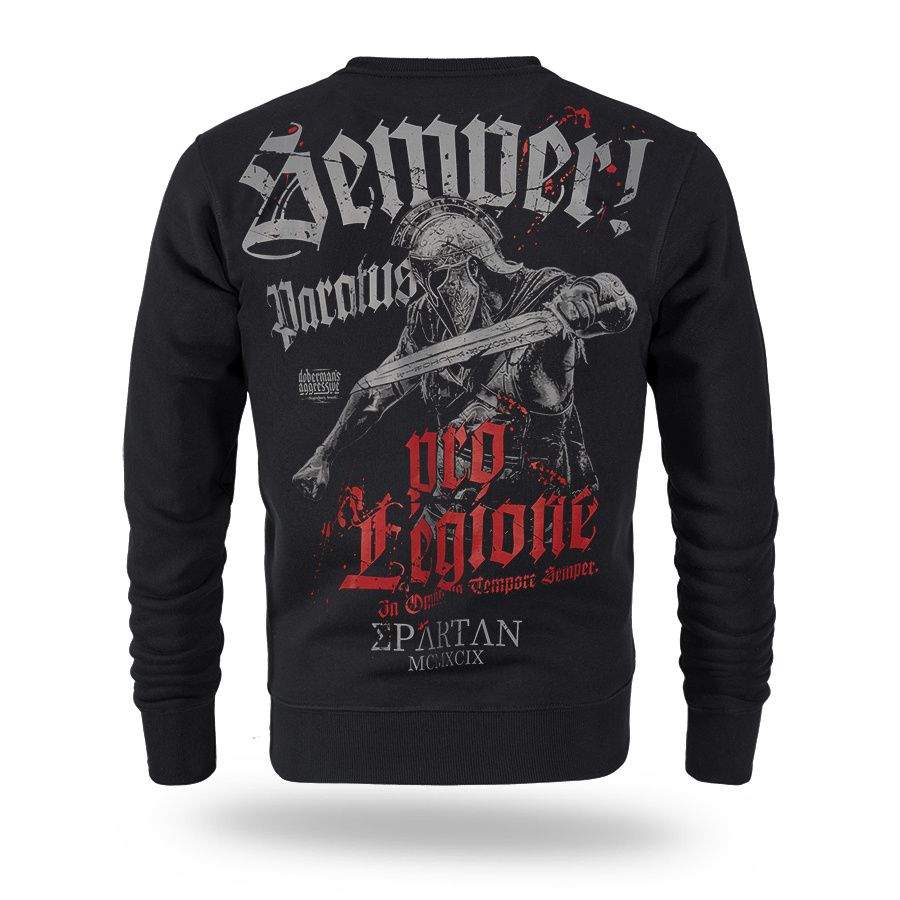 Klasická pánská mikina oblékaná přes hlavu. Na levém rukávu je malá cedulka s logem značky. Dolní část mikiny a rukávů je zakončená širokým stahovacím lemem. Vpředu a vzadu potisk Semper Paratus.