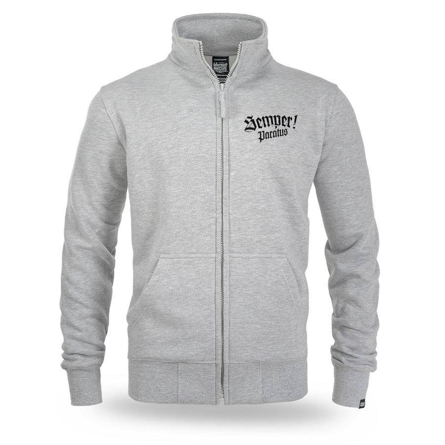 Mikina na zip se stahovacími lemy se dvěma kapsami na přední straně ze 100% bavlny. Vpředu a vzadu potisk Semper Paratus.