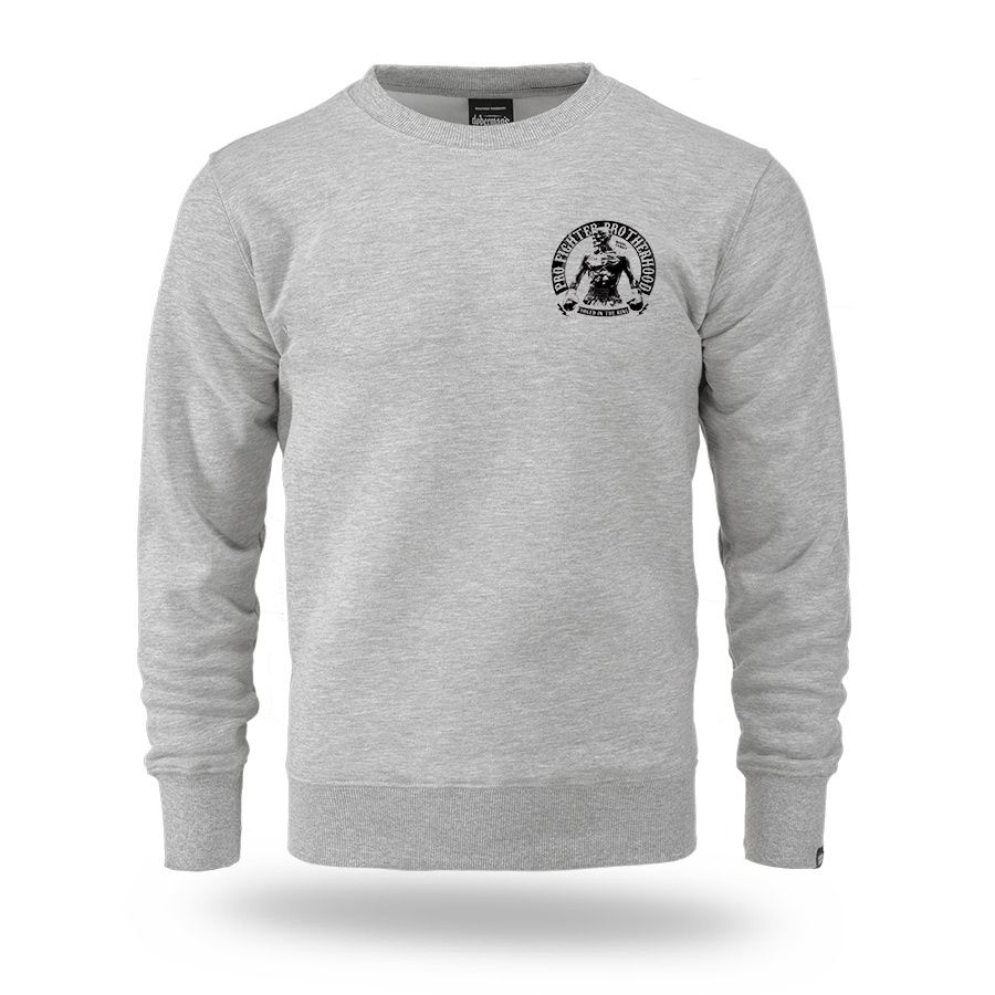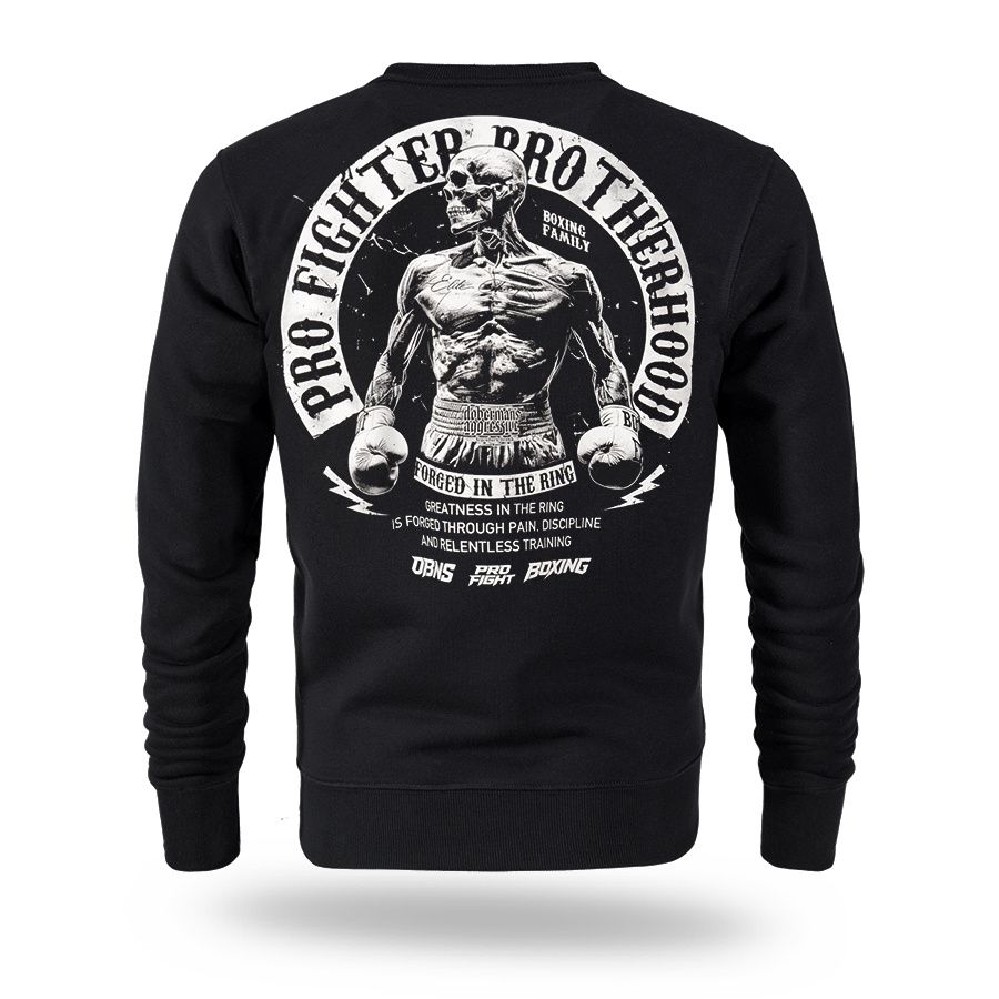 Klasická pánská mikina oblékaná přes hlavu. Na levém rukávu je malá cedulka s logem značky. Dolní část mikiny a rukávů je zakončená širokým stahovacím lemem. Vpředu a vzadu potisk Pro Fighter Brotherhood – Forged in the Ring.