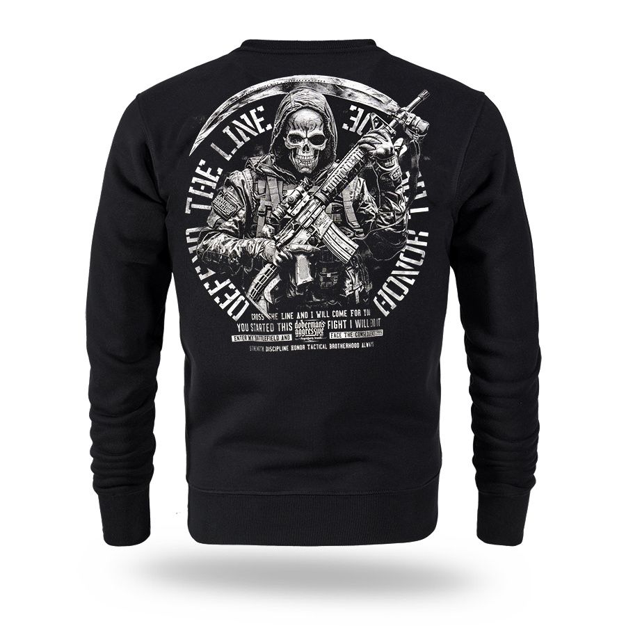 Klasická pánská mikina oblékaná přes hlavu. Na levém rukávu je malá cedulka s logem značky. Dolní část mikiny a rukávů je zakončená širokým stahovacím lemem.