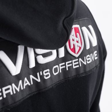 Ninja mikina pochází z řady Division. Tento model má objemnou kapuci, bavlněný přívěšek u zipu a stahovací lemy na rukávech. Mikina má na hrudi černou nášivku s 3D výšivkou „Division Doberman’s Offensive”. Na přední straně hrudi se nachází malá nášivka ve tvaru štítu, také vytvořená technikou 3D výšivky.
